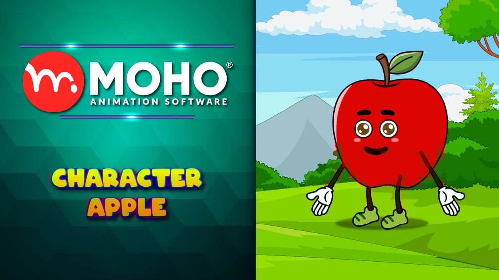 Character Apple with a 3/4 angle view | Moho | Rigged Animation
