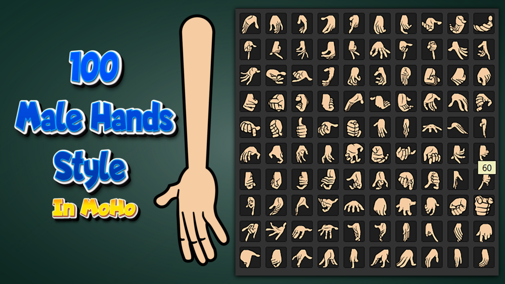 - With 100 different Male hand styles, you can use them with flexibility during the animation by using the tool to display the image icon of hand styles, helping you to choose quickly and easily!